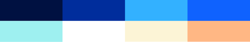 Our color combinations are formulaic in the sense that we base them on a tonal differentiation of 3 steps (30%) and are created around our primary palette of blues (Blue 60, Blue 80, and Blue 100). Please default to our hero color combination whenever possible. We foresee these color combinations being utilized in: text on a color background, deck schematics, data visualization, illustration, email, and newsletters.