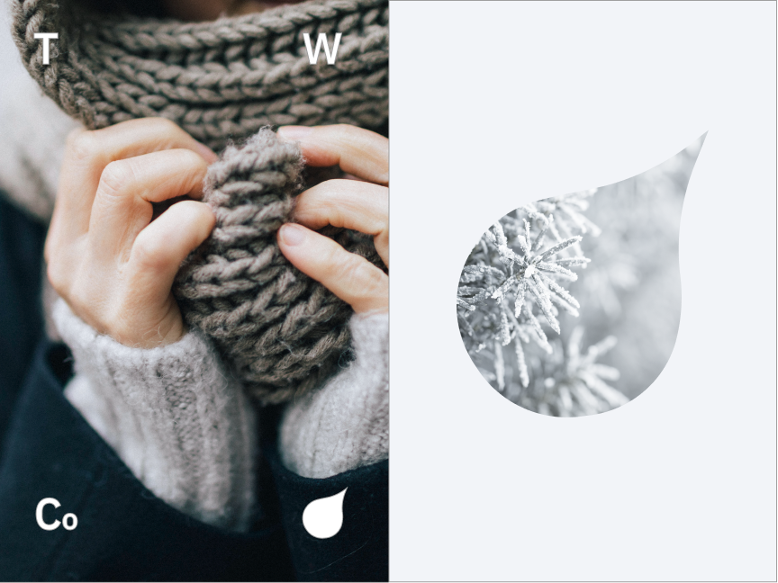 Also, see the photography page to know the type of imagery we want to use in our branding and how we sometimes will choose to integrate the drop to interact with the image subject.